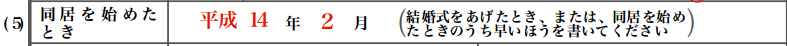 同居を始めた時、もしくは結婚式を挙げた日、どちらか早い方を書きます。どちらもまだの場合は空欄にします。